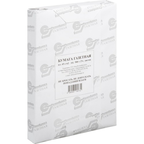Писчая бумага (А4, 45 г/кв.м, белизна 60 ISO, 500 л)..