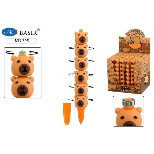 Шариковая ручка детская: "КАПИБАРА"; объёмный корпус с вращающимися фигурками-капибара (сменный стержень); цвет чернил синий...
