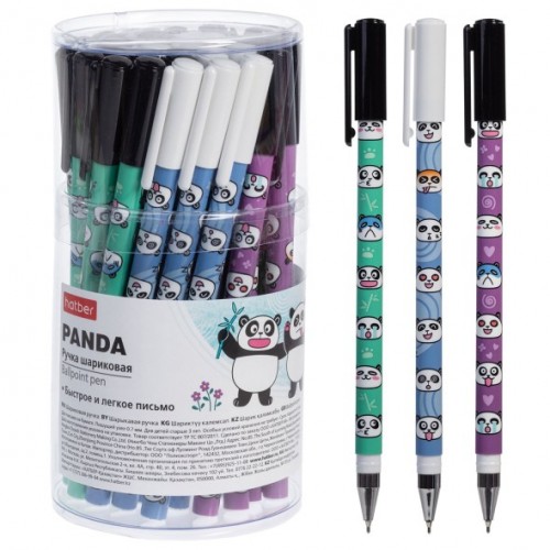 BP_088545 РУЧКА Hatber шариковая-Панда- Синяя 0,7мм чернила на масл.основе soft ink 36 шт в Пласт.тубе..