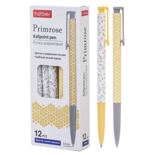 BP_078444 РУЧКА Hatber шариковая Автомат. Primrose/Примроуз Синяя 0,7мм чернила на масл.основе -Ассорти- 12шт. в картонной коробке..