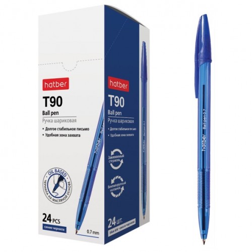 BP_062568 РУЧКА Hatber шариковая Т-90 Синяя 0,7мм чернила на масл.основе 24шт в карт. Мини-Дисплее..
