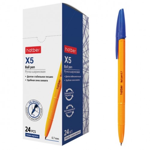 BP_062567 РУЧКА Hatber шариковая X-5 Синяя 0,7мм чернила на масл.основе 24шт в картонной коробке..
