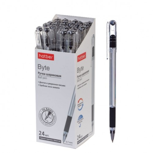 BP_091399 РУЧКА шариковая Byte Черная 0,7мм чернила на масл.основе с резиновым грипом 24 шт в карт. Мини-Дисплее