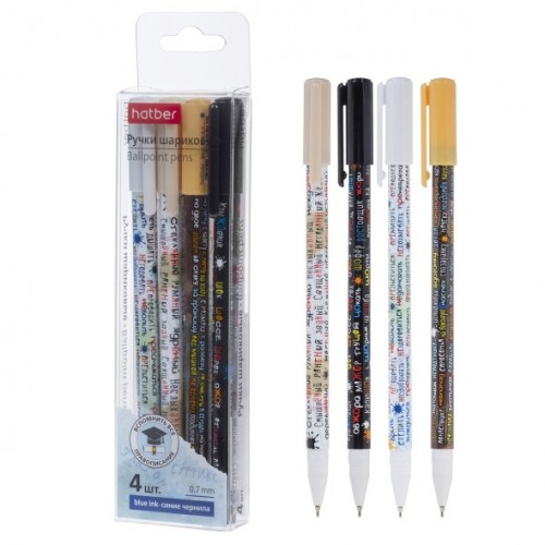 BP_092280 Набор шариковых ручек -Вспомнить все- ПРАВОПИСАНИЕ Синяя 0,7мм чернила на масл.основе soft ink 4шт. в пластик. коробке с европодвесом Ассорти..