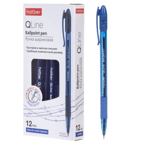 BP_081882 РУЧКА Hatber шариковая Q.line Синяя 0,7мм игольч.пишущ.узел чернила на масл.основе с резиновым грипом 12шт. в картонной коробке..