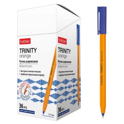 BP_083437 РУЧКА Hatber шариковая TRINITY orange Синяя 0,7мм чернила на масл.основе 36 шт в картонной Дисплей-витрине..