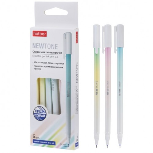 GPs_092402 Набор стираемых гелевых ручек Hatber NEWtone 0,6мм игольч.пишущ.узел 6шт. в картонной коробке Ассорти
