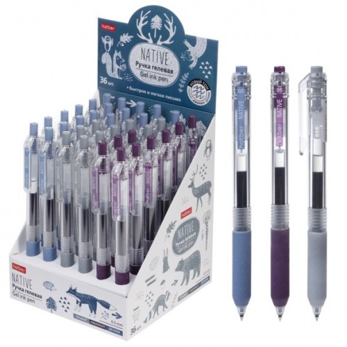 GP_083897 РУЧКА гелевая Автомат. Hatber Native/Нэйтив (деним, графит, амарант) 0,5мм 36 шт в карт. Мини-Дисплее ассорти