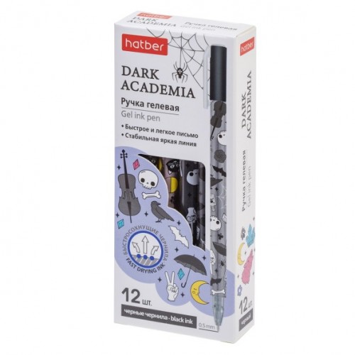 GP_082773 РУЧКА Hatber гелевая Dark Academia Черная 0,5мм 12шт. в картонной коробке..