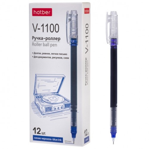 RP_085063 РУЧКА-Роллер Hatber V-1100 Синяя 0,5мм 12 шт. в картонной коробке
