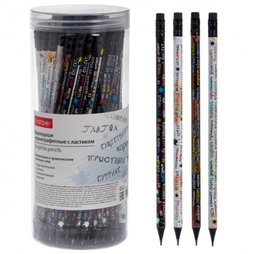 Карандаш чернографитный ХАТБЕР "Вспомнить все ПРАВОПИСАНИЕ" HB, с ластиком с заточ. круглый (090622)