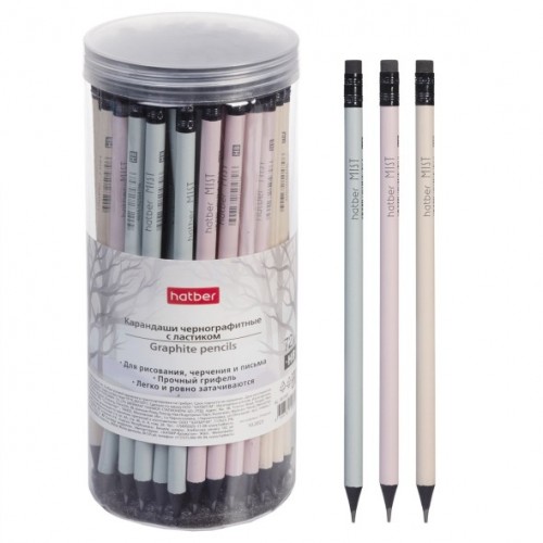 BL_081965 Карандаш чернографитн. Hatber Mist круглый корпус черн.дерево 72шт. Ассорти "HB" с ластиком заточен. в пласт.тубе