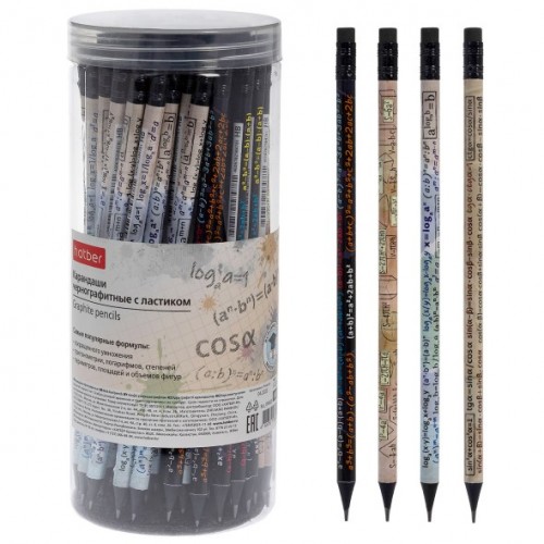BL_090620 Карандаш чернографитн. -Вспомнить все- МАТЕМАТИКА круглый корпус 72шт. Ассорти "HB" с ластиком заточен. в пласт.тубе..