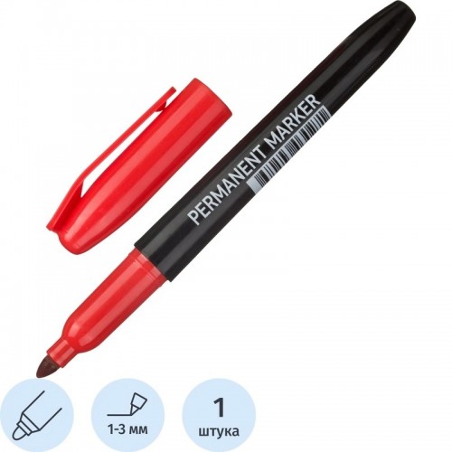Маркер перманентный, Alingar, красный, острый пулевидный, 1-2 мм, 12 шт/уп, европодвес..