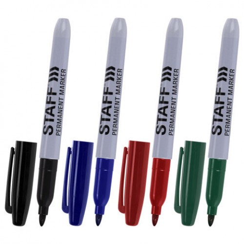 4 цвета в наборе: черный, красный, зеленый, синий. Круглая форма корпуса из пластика, диаметр которого 12 мм. Толщина линии письма - 2-4 мм в зависимости от угла наклона. Особая нестираемая основа перманентного маркера обеспечивает такие качества, как стойкость к воздействию воды, ультрафиолета, низ..