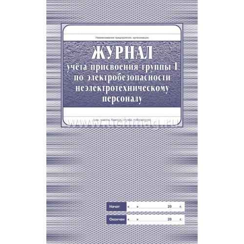 Журнал учета присвоения группы 1 по электробезопасности неэлектротехническому персоналу (Формат А4, обложка офсет пл 120, блок офсетная, пл. 65) 32 стр.