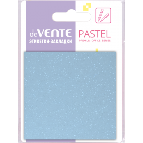 Самоклеящиеся этикетки-закладки "deVENTE. Pastel" пластиковые прозрачные, искрящиеся, 76x76 мм, 50 листов, в пластиковом пакете с европодвесом, голубые..
