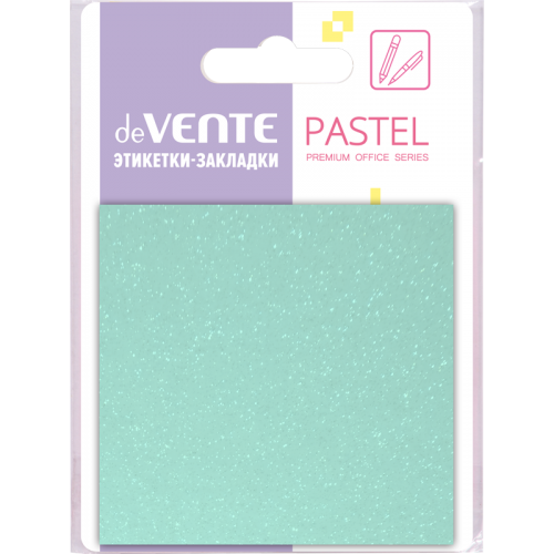 Самоклеящиеся этикетки-закладки "deVENTE. Pastel" пластиковые прозрачные, искрящиеся, 76x76 мм, 50 листов, в пластиковом пакете с европодвесом, изумрудные..