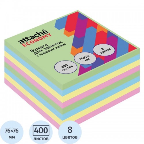Бумага для заметок с клеевым краем Economy 76х76 мм, 400 л, 8 цв в асс..