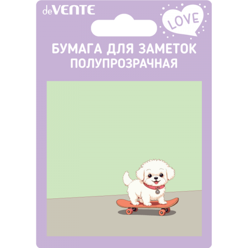 Самоклеящиеся этикетки-закладки "deVENTE. Puppy" пластиковые полупрозрачные, с дизайном, 76x76 мм, 50 листов, печать 4+0, в картонном блистере и пластиковом пакете с европодвесом, мятные..