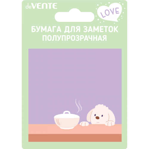 Самоклеящиеся этикетки-закладки "deVENTE. Puppy" пластиковые полупрозрачные, с дизайном, 76x76 мм, 50 листов, печать 4+0, в картонном блистере и пластиковом пакете с европодвесом, сиреневые..
