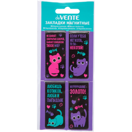 Набор закладок для книг "deVENTE. У меня лапки" магнитных бумажных, 4 шт в блистерной упаковке, размеры закладок в сложенном виде 25x56,6 мм..