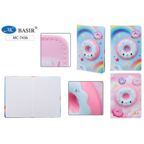 Блокнот BASIR 80л. 21х14,3см, "ПОНЧИК СКВИШ", цв. обл. с рис., фигура сквиш пончик, клетка (MC-7436)