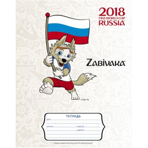 Тетрадь А5 12 л. линия ХАТБЕР "ЧМ ПО ФУТБОЛУ 2018 (ТАЛИСМАН)", 5 диз. в блоке, скругл. углы, скоба (1/20/280) (12Т5В2) (049048)