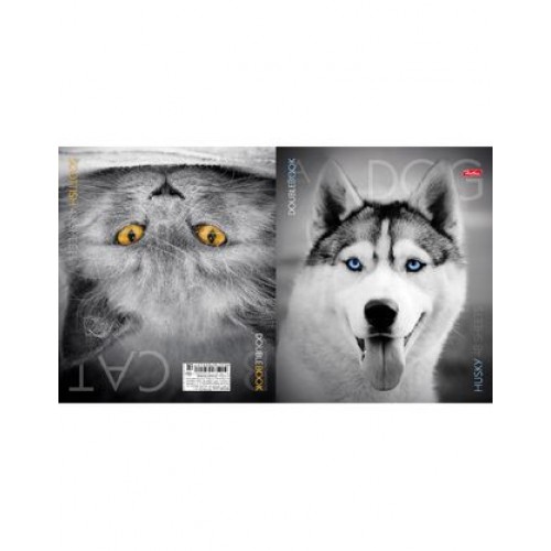 Тетрадь А5 48 л. клетка ХАТБЕР "СОБАКА-КОТ", двойная, скоба (48Тд5B1_06490) (013446)