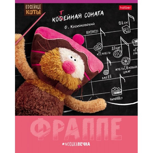 24Т5В1 Тетрадь 24л А5ф клетка 60-65г/кв.м на скобе 5 диз.в блоке скругл.углы серия -Кофейные коты-..