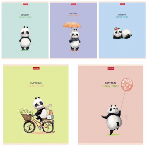 Тетрадь А5 40л. клетка, ХАТБЕР "FUNNY PANDA", мел.карт. офсет 60 гр. кр.поля,скоба (40Т5В1) (072256)
