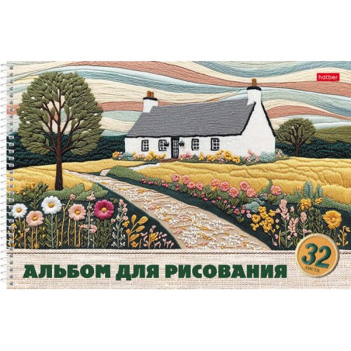 АЛЬБОМ для рисования 32л А4ф на гребне 5 диз.в блоке Пластиковая обложка 300мкм с печатью серия -Тепло стежков-..