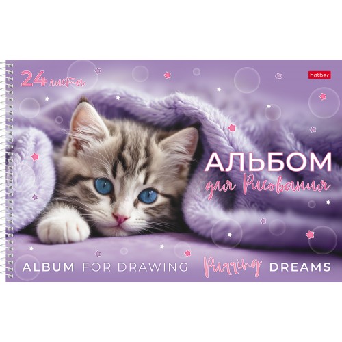 АЛЬБОМ для рисования 24л А4ф на гребне 5 диз.в блоке Пластиковая обложка 300мкм с печатью серия -Нежные мечты-..