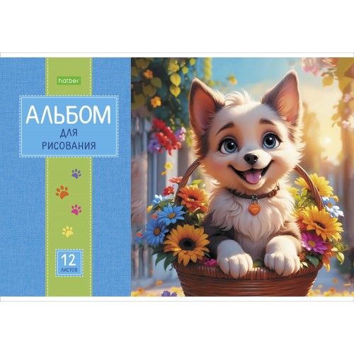 12А5В АЛЬБОМ для рисования 12л А5ф на скобе 5 диз.в блоке серия -Пушистые милашки-..