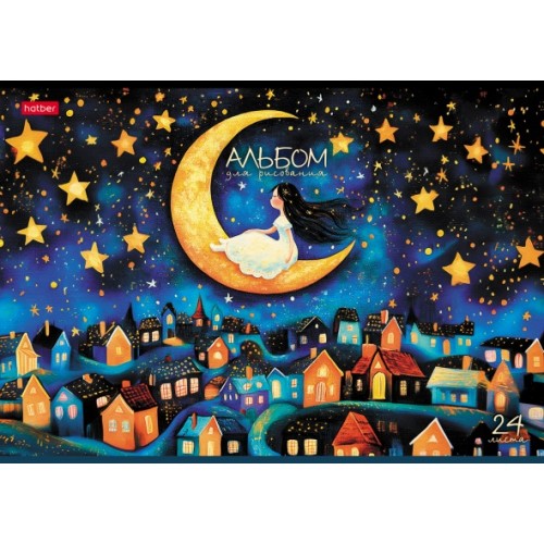 24А4Впл АЛЬБОМ для рисования 24л А4ф на скобе 5 диз.в блоке Пластиковая обложка 200мкм с печатью серия -Навстречу к звездам-..