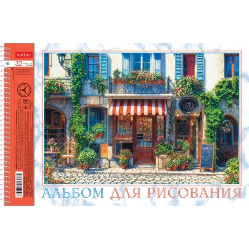 24А4лВ АЛЬБОМ для рисования 24л А4ф на скобе 5 диз.в блоке ламинация Soft-touch серия -Живописные домики-..