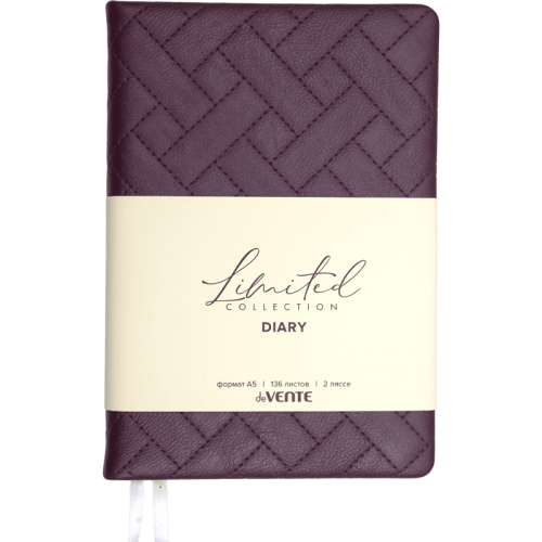 Ежедневник недатированный "deVENTE. Elizabeth" A5 (145 ммx205 мм) 272 стр, кремовая бумага 70 г/м2, печать в 2 краски, твердая обложка из искусственной стеганной кожи с поролоном, перфорация, закругленные уголки, 2 ляссе, в термоусадочной пленке, бургунди