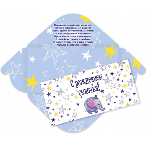 74 6368 Конверт для денег стандарт с рождением сыночка ..