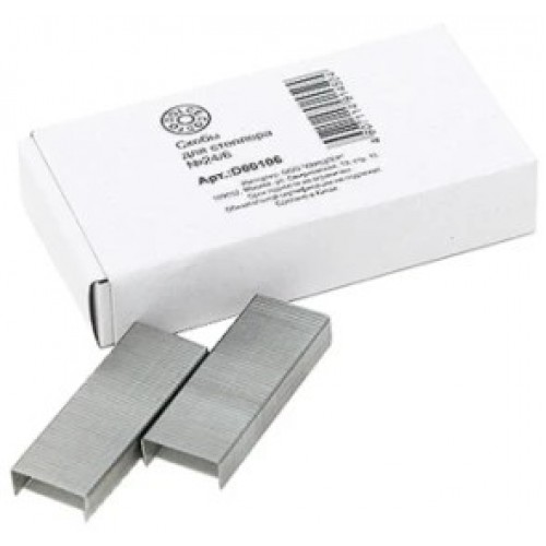 Скобы для степлера №24/6 металлические оцинкованные, 1000 штук в белой картонной упаковке. Предназначены для степлеров со сшивающей способностью до 30 листов...