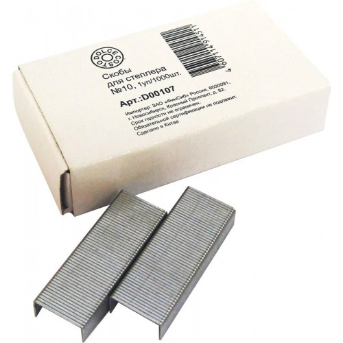 Скобы для степлера №10 металлические оцинкованные, 1000 штук в белой картонной упаковке. Предназначены для степлеров со сшивающей способностью до 16 листов...