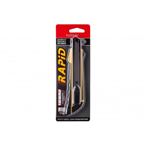 UK_060165 Нож Канцелярский Hatber RAPID 18мм AUTO-LOCK прорезиненный корпус металл.направл. в блистере с европодвесом