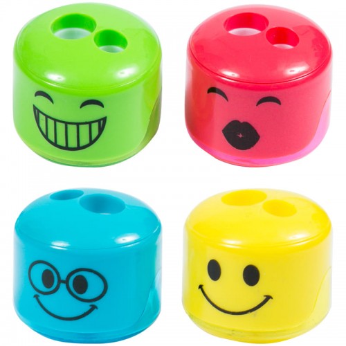 Точилка пластиковая ArtSpace "Смайлик" 2 отверстия, контейнер, ассорти..