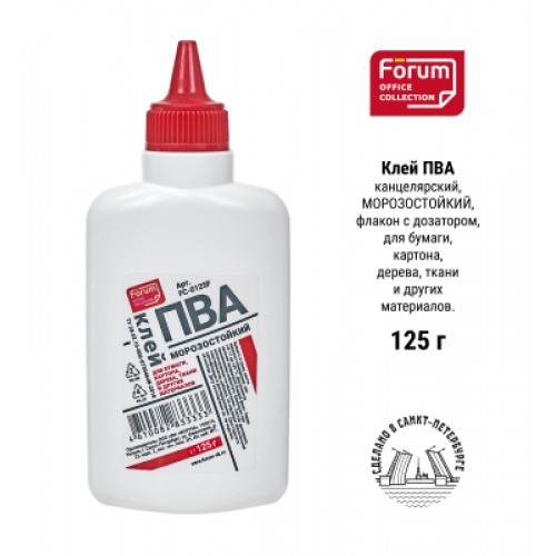 Клей ПВА "Attomex" морозоустойчивый (5 циклов) 120 г в пластиковой бутылочке с дозатором и съемным колпачком евро, дата изготовления указана на коробе..