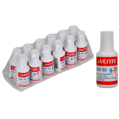 Клей ПВА "deVENTE. School" морозоустойчивый (до -40°C) 20 г в пластиковой бутылочке с кисточкой, в пластиковом поддоне..