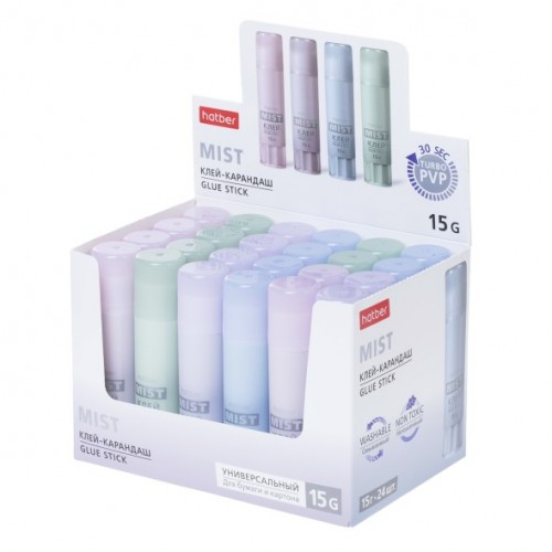 GS_081211 Клей-Карандаш Hatber -Mist- 15гр ПВП в картонной Дисплей-витрине..