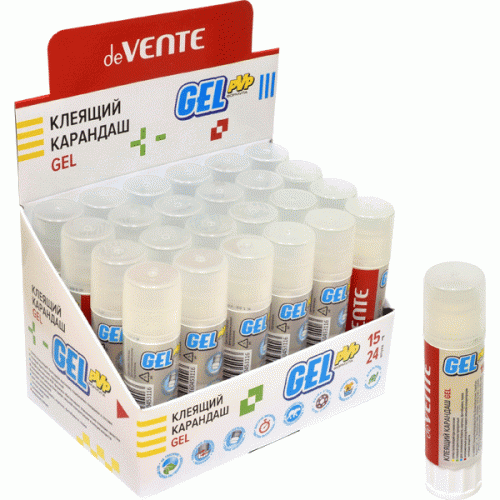 Клеящий карандаш PVP основа "deVENTE. Gel" 21 г гелевый кристально-прозрачный, в картонном дисплее с пластиковым поддоном ..