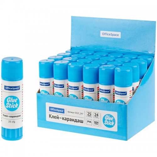Клей-карандаш OfficeSpace, 25г, дисплей, ПВА..