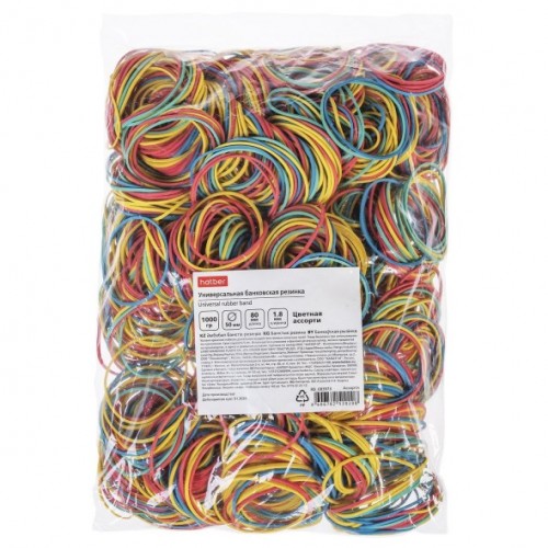 RB_083973 Резинка банковская цветная диаметр 50мм, длина 80мм, 1000г в пакете..