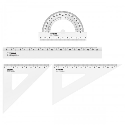 Набор геометрический средний (линейка 20 см, транспортир, 2 треугольника 45/45,30/60 (120) (НП-2)..