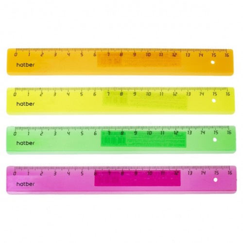 MNp_16099 Линейка Пластиковая Hatber 16см полупрозрачная флуоресцентная ассорти